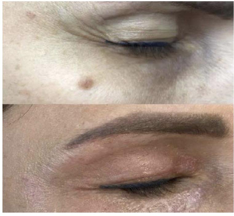 Es entstehen keine ernsthaften Nebenwirkungen. Meist tritt eine Schwellung an der behandelten Stelle auf. Die Kruste löst sich innerhalb von 5-8 Tagen von selbst ab. Es entsteht ein Erythem, die Haut sieht etwa 4 Wochen sehr rosig aus und passt sich nach einiger Zeit dem Hautton an.